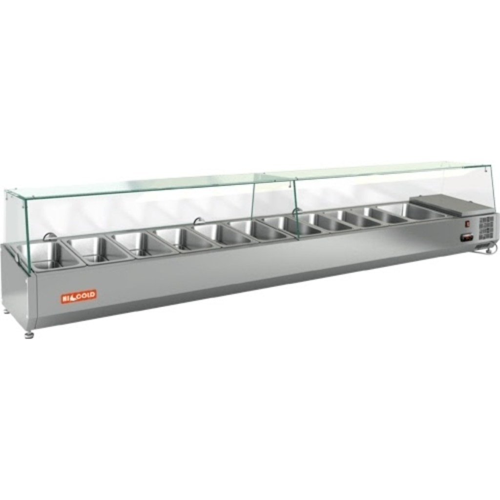 Каталог оборудования Холодильное оборудованиеВитрины для ингредиентовВитрина холодильная для ингредиентов HICOLD VRTG 2360 1/3 Витрина холодильная для ингредиентов HICOLD VRTG 2360 1/3 Код товара: 064-449 Поделиться: WhatsAppTelegram СравнитьДобавить в КПВ избранное 0 89 847 ₽ В корзину 0 шт Под заказСамовывоз сегодня бесплатно Взять в кредит Купить в лизинг Получить консультацию в WhatsApp Описание Характеристики Отзывы 0 Инструкции 2 Витрина холодильная для ингредиентов HICOLD VRTG 2360 1/3 предназначена для охлаждения, кратковременного хранения и наглядной демонстрации ингредиентов, салатов и готовых блюд на предприятиях общественного питания и в торговых точках. Гастроёмкости в комплект не входят, приобретаются отдельно. Основные особенности: Корпус выполнен из нержавеющей стали, обеспечивая долговечность и легкость в уходе; Электронная панель управления для точной настройки температуры; Модель с надстройкой из стекла (исполнение G) для удобной демонстрации продуктов; Высота витрины — 225 мм, высота стеклянной надстройки — 205 мм; Вместимость: 10 гастроёмкостей GN1/3 + 1 гастроёмкость GN1/2; Опорные ножки для устойчивой установки на столешнице. HICOLD VRTG 2360 1/3 — компактная и функциональная настольная витрина, идеально подходящая для демонстрации и кратковременного хранения продуктов на профессиональной кухне или в торговой зоне.Изображение товара, представленного на фото, может отличаться от его фактического вида. Показать все Габаритные размеры2360×385×459 ммДиапазон рабочей температурыот +2 до +7 °CДлина2360 ммГлубина385 ммВысота459 ммТип крышкиСтеклянная Гастроемкостей11 штТип гастроемкостейGN1/3, GN1/2 Мощность0,15 ВтНапряжение220 ВТип охлажденияСтатическое Материал изготовленияНержавеющая сталь ХладагентR134 Вес нетто67 кгВес брутто107 кгТип оттайкиРучная Габариты в упаковке2460×485×559 ммБрендHicold Оставить отзыв Еще никто не оставил отзыв на этот товар Инструкция на HICOLD VRTG 2360.pdfДекларация о соответствии.pdf Похожие товары Перейти в каталог Под заказ 63 171 ₽ Витрина холодильная для ингредиентов HICOLD VRX 1500 1/4 Под заказ 55 287 ₽ Витрина холодильная для ингредиентов HICOLD VRTU 1835 1/4 Под заказ 50 860 ₽ Витрина холодильная для ингредиентов HICOLD VRTU 1390 1/4 Под заказ 57 000 ₽ Витрина для ингредиентов Carboma A40 SM 1,6 VT3-G с крышкой В наличии 46 914 ₽ Витрина холодильная для ингредиентов Tatra TVR1400-6GN1/4 В наличии 60 796 ₽ Витрина холодильная для ингредиентов HICOLD VRTU 1970 1/4 Под заказ 57 000 ₽ Витрина для ингредиентов Carboma A30 SM 1,6 (7 GN1/4) Под заказ 59 500 ₽ Витрина для ингредиентов Carboma A40 SM 1,2 VT2-G с крышкой С этим товаром покупают Под заказ 87 262 ₽ Шкаф холодильный Север ШХ-700 СТ/РС Под заказ 141 182 ₽ Шкаф холодильный универсальный Север ШХ-1400 УН/РС Под заказ 127 794 ₽ Шкаф морозильный Ангара 700 БК Под заказ 114 240 ₽ Шкаф холодильный Polair DM110-S без канапе Под заказ 144 162 ₽ Шкаф холодильный универсальный МХМ Капри 1,12 УМ нержавейка Под заказ 122 025 ₽ Шкаф морозильный Abat ШХн-0,5-02 Под заказ 21 872 ₽ Шкаф холодильный HURAKAN HKN-BC90 Под заказ 135 630 ₽ Шкаф холодильный универсальный Carboma V560 INOX Ранее просмотрено Под заказ 55 287 ₽ Витрина холодильная для ингредиентов HICOLD VRTU 1835 1/4
