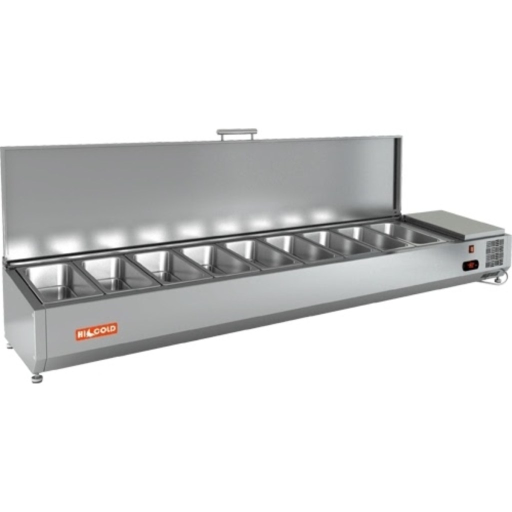 Каталог оборудования Холодильное оборудованиеВитрины для ингредиентовВитрина холодильная для ингредиентов HICOLD VRTU 1970 к PZE3 (1/3) Витрина холодильная для ингредиентов HICOLD VRTU 1970 к PZE3 (1/3) Код товара: 064-669 Поделиться: WhatsAppTelegram СравнитьДобавить в КПВ избранное 0 60 525 ₽ В корзину 0 шт Под заказСамовывоз сегодня бесплатно Взять в кредит Купить в лизинг Получить консультацию в WhatsApp Описание Характеристики Отзывы 0 Инструкции 3 Витрина холодильная для ингредиентов HICOLD VRTU 1970 к PZE3 (1/3) используется для охлаждения, кратковременного хранения и удобной демонстрации ингредиентов, салатов и готовых блюд на предприятиях общественного питания и торговли. Устанавливается на холодильные столы для пиццы серии PZE3 благодаря предусмотренным креплениям в нижней части корпуса. На фото показана аналогичная модель с настольной установкой. Ключевые особенности: Корпус из нержавеющей стали — прочность и лёгкость в обслуживании. Электронная панель управления — точный контроль температуры. Исполнение U — оснащена крышкой для защиты продуктов. Высота витрины — 279 мм — компактность при сохранении вместимости. Вместимость: 9xGN1/3 — оптимальная организация хранения (гастроёмкости приобретаются отдельно). Совместимые модели столов: PZE3-1111/SN, PZE3-1111/GN HICOLD VRTU 1970 к PZE3 (1/3) — профессиональная настольная витрина, сочетающая компактные размеры, современное управление и надёжную защиту ингредиентов. Отлично подходит для пиццерий, ресторанов и кафе, где важны скорость работы и сохранение свежести продуктов.Изображение товара, представленного на фото, может отличаться от его фактического вида. Показать все Габаритные размеры1970×385×279 ммДиапазон рабочей температурыот +2 до +7 °CДлина1970 ммГлубина385 ммВысота279 ммТип крышкиМеталлическая Гастроемкостей9 штТип гастроемкостейGN1/3 Напряжение220 ВТип охлажденияСтатическое Материал изготовленияНержавеющая сталь ХладагентR134 Мощность0,15 кВтВес нетто40 кгВес брутто85 кгТип оттайкиРучная Габариты в упаковке2160×550×580 ммБрендHicold Оставить отзыв Еще никто не оставил отзыв на этот товар Инструкция на HICOLD VRTU 1970 к PZE3.pdfСхема установки на витрину.jpgДекларация о соответствии.pdf Похожие товары Перейти в каталог Под заказ 101 613 ₽ Витрина холодильная для ингредиентов TEFCOLD VK33-180 С этим товаром покупают В наличии 99 023 ₽ Стол холодильный среднетемпературный Polair ТМ2GN-G В наличии 40 926 ₽ Льдогенератор Cooleq BF-30 (пальчики) В наличии 68 097 ₽ Шкаф холодильный Polair СМ 105-S