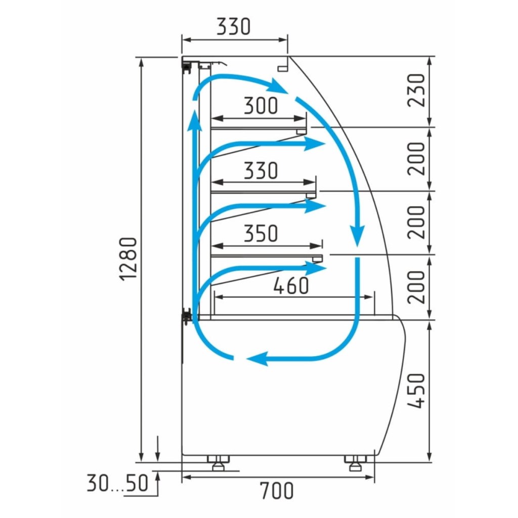 Витрина кондитерская Carboma K70 VM 1,3-2 Standard открытая (9005-0430) — это профессиональная напольная витрина открытого типа, предназначенная для охлаждения, кратковременного хранения и эффектной демонстрации десертов, выпечки и кондитерских изделий. Модель разработана с учётом требований предприятий общественного питания и торговли, таких как кафе, кондитерские, бары и рестораны.