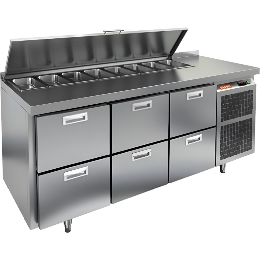 Каталог оборудования Холодильное оборудованиеСтолы охлаждаемыеСтолы холодильные для салатовСтол холодильный для салатов HiCold SL1-222SN (1/3) с крышкой Стол холодильный для салатов HiCold SL1-222SN (1/3) с крышкой Код товара: 064-846 Поделиться: WhatsAppTelegram СравнитьДобавить в КПВ избранное 0 259 642 ₽ В корзину 0 шт Под заказСамовывоз сегодня бесплатно Взять в кредит Купить в лизинг Получить консультацию в WhatsApp Описание Характеристики Отзывы 0 Стол холодильный для салатов HiCold SL1-222SN (1/3) предназначен для использования на предприятиях общественного питания и торговли. Он объединяет рабочую поверхность и охлаждаемый отсек, что делает его удобным решением для хранения, охлаждения и подготовки ингредиентов при приготовлении салатов, пиццы и других блюд. Такая конструкция позволяет повару работать быстрее и эффективнее, так как все необходимые продукты находятся под рукой. Корпус и столешница выполнены из прочной нержавеющей стали, устойчивой к коррозии и легко поддающейся санитарной обработке.Металлическая крышка защищает продукты от загрязнений и сохраняет их свежесть. Особенности модели: Электронная панель управления — точная настройка температурного режима. 6 выдвижных ящика — быстрое размещение и замена продуктов. Вместимость салат-бара — до 8 гастроемкостей глубиной до 100 мм. Автоматические доводчики — комфорт при загрузке/выгрузке. Легкозаменяемые магнитные уплотнители — надежная герметичность. Открытая агрегатная часть — быстрый доступ для обслуживания. Регулируемые по высоте ножки — устойчивость даже на неровном полу. Толщина столешницы, борта и теплоизоляции — 50 мм, что обеспечивает прочность и энергоэффективность конструкции. HiCold SL1-222SN (1/3) — практичное и удобное решение для профессиональной кухни, обеспечивающее удобную подготовку и хранение ингредиентов.Изображение товара, представленного на фото, может отличаться от его фактического вида. Показать все Габаритные размеры1835×600×850 ммДиапазон рабочей температурыот +2 до +10 °CРасположение агрегатаБоковое Материал столешницыНержавеющая Тип столаС ящиками Объём435 лТип гастроемкостейGN 1/3 Количество ящиков6 штНапряжение220 ВМощность0,46 кВтТип охлажденияДинамическое Тип оттайкиАвтоматическая СтолешницаС бортом Габариты в упаковке2000×750×1000 ммВес нетто120 кгВес брутто175 кгБрендHicold Оставить отзыв Еще никто не оставил отзыв на этот товар Ранее просмотрено Под заказ 192 411 ₽ Стол холодильный для салатов HiCold SL1-1111GN (1/3) без крышки Под заказ 260 092 ₽ Стол холодильный для салатов HiCold SL1-222GN (1/3) с крышкой Под заказ 201 682 ₽ Стол холодильный для салатов HiCold SL2-22GN (1/6) О без крышки Под заказ 174 952 ₽ Стол холодильный для салатов HiCold SLE2-111GN (1/6) О З М с крышкой Под заказ 305 992 ₽ Стол холодильный для салатов HiCold SL1-333GN (1/3) с крышкой Под заказ 209 962 ₽ Стол холодильный для салатов HiCold SL1-133GN (1/3) с крышкой