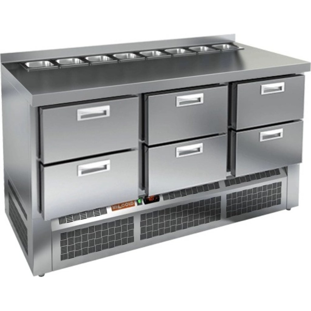 Каталог оборудования Холодильное оборудованиеСтолы охлаждаемыеСтолы холодильные для салатовСтол холодильный для салатов HiCold SLE2-222GN (1/6) без крышки Стол холодильный для салатов HiCold SLE2-222GN (1/6) без крышки Код товара: 064-889 Поделиться: WhatsAppTelegram СравнитьДобавить в КПВ избранное 0 235 882 ₽ В корзину 0 шт Под заказСамовывоз сегодня бесплатно Взять в кредит Купить в лизинг Получить консультацию в WhatsApp Описание Характеристики Отзывы 0 Стол холодильный для салатов HiCold SLE2-222GN (1/6) без крышки — это профессиональный салатный стол, предназначенный для использования в кафе, ресторанах, пиццериях и других предприятиях общественного питания. Он совмещает в себе просторную рабочую поверхность и охлаждаемый объем, обеспечивая удобство и эффективность при приготовлении различных блюд — от салатов до пиццы. Благодаря корпусу и столешнице из нержавеющей стали, оборудование устойчиво к коррозии, легко очищается и соответствует санитарным требованиям. Ключевые особенности: Электронная панель управления — обеспечивает точное регулирование температуры и удобство в эксплуатации. 6 выдвижных ящиков — обеспечивают удобное распределение ингредиентов и быстрый доступ к ним в процессе работы. Салат-бар вмещает до 8 гастроемкостей — оптимален для широкого ассортимента заготовок. Автоматические доводчики дверей с фиксацией — повышают удобство использования, особенно при загрузке и выгрузке продуктов. Магнитные уплотнители — легко заменяются и обеспечивают плотное прилегание, предотвращая утечку холода. Открытая агрегатная часть — облегчает техническое обслуживание. Регулируемые ножки — позволяют установить стол на любой поверхности, компенсируя неровности пола. Глубина гастроемкостей — до 100 мм, толщина столешницы — 50 мм, высота борта — 50 мм, толщина теплоизоляции — 50 мм — обеспечивают стабильное охлаждение и прочность конструкции. HiCold SLE2-222GN (1/6) без крышки — это функциональный и вместительный салатный стол, который идеально подходит для профессиональных кухонь с интенсивной загрузкой. Он сочетает в себе надежность, удобство и продуманную конструкцию для максимальной производительности на рабочем месте.Изображение товара, представленного на фото, может отличаться от его фактического вида. Показать все Габаритные размеры1485×700×850 ммДиапазон рабочей температурыот +2 до +10 °CРасположение агрегатаНижнее Материал столешницыНержавеющая Тип столаС ящиками Объём375 лТип гастроемкостейGN 1/6 Количество ящиков6 штНапряжение220 ВМощность0,2 кВтТип охлажденияДинамическое Тип оттайкиАвтоматическая СтолешницаС бортом Габариты в упаковке1700×850×1080 ммВес нетто115 кгВес брутто160 кгБрендHicold Оставить отзыв Еще никто не оставил отзыв на этот товар Ранее просмотрено В наличии 168 292 ₽ Стол холодильный для салатов HiCold SL1-111GN (1/3) с крышкой Под заказ 120 411 ₽ Стол холодильный для салатов HiCold SLE1-11SN (1/3) без крышки Под заказ 204 472 ₽ Стол холодильный для салатов HiCold SL2-22GN (1/6) с крышкой Под заказ 259 191 ₽ Стол холодильный для салатов HiCold SL1-1122GN (1/3) с крышкой Под заказ 176 082 ₽ Стол холодильный среднетемпературный Abat СХС-60-02 без борта (дверь-стекло, дверь-стекло, дверь-стекло)