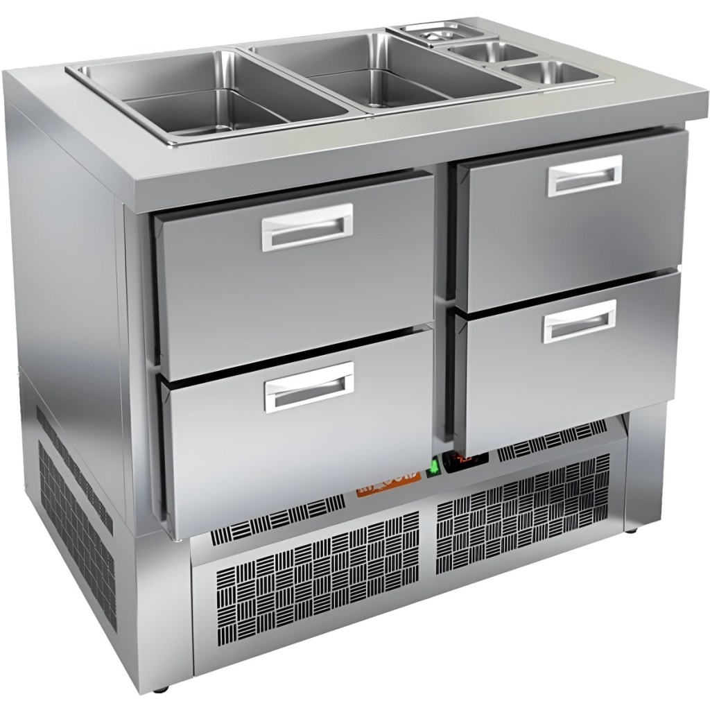 Вместимость салат-бара — 2 гастроемкостей формата GN 1/1 и 3 гастроемкостей формата GN1/6