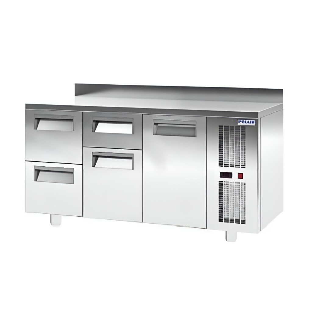 Каталог оборудования Холодильное оборудованиеСтолы охлаждаемыеСтолы морозильные низкотемпературныеСтол морозильный низкотемпературный Polair TB3GN-210-GC Стол морозильный низкотемпературный Polair TB3GN-210-GC Код товара: 062-493 Поделиться: WhatsAppTelegram СравнитьДобавить в КПВ избранное 0 202 992 ₽ В корзину 0 шт Под заказСамовывоз сегодня бесплатно Взять в кредит Купить в лизинг Получить консультацию в WhatsApp Описание Характеристики Отзывы 0 Стол морозильный низкотемпературный Polair TB3GN-210-GC предназначен для обработки ингредиентов при приготовлении блюд, а также для хранения продуктов и полуфабрикатов в замороженном виде. Цельнозаливной корпус из стали обеспечивает высокую механическую прочность, эффективную термоизоляцию, герметичность и долговечность конструкции. Оборудование рассчитано на работу при температуре окружающей среды до 32 °С и относительной влажности до 60%. Особенности: Автоматическая оттайка испарителя с помощью ТЭНов и система испарения конденсата. Динамическое охлаждение для равномерного распределения температуры. Электронный терморегулятор для точного контроля температуры. Двухъярусный агрегат, полностью выдвигаемый для удобства обслуживания. Все элементы холодильной системы вынесены за пределы охлаждаемого пространства, что увеличивает полезный объем. ТЭН поддона воздухоохладителя предотвращает образование наледи. Эластичные уплотнители с магнитными вставками обеспечивают максимальную герметичность. Класс защиты IP24, устойчивость к попаданию влаги. Регулируемые по высоте ножки для установки на неровных поверхностях. Экологичный хладагент R290. Толщина стенок корпуса — 43 мм, что способствует надежной теплоизоляции. Polair TB3GN-210-GC — надежное и эффективное оборудование для профессиональных кухонь и торговых точек, обеспечивающее долговечность и стабильное хранение продуктов при оптимальном температурном режиме. Изображение товара, представленного на фото, может отличаться от его фактического вида. Показать все Габаритные размеры1628×705×850 ммДиапазон рабочей температурыдо -18 °CРасположение агрегатаБоковое Материал столешницыНержавеющая Тип столаС дверьми и ящиками Тип двериГлухая Объём450 лКоличество дверей1 штКоличество полок1 штКоличество ящиков4 штНапряжение220 ВМощность0,55 кВтТип охлажденияДинамическое Тип оттайкиАвтоматическая ХладагентR290 СтолешницаС бортом Габариты в упаковке1725×815×1045 ммВес брутто175 кгБрендPolairВсе морозильные столы PolairВсе морозильные столы с бортом Оставить отзыв Еще никто не оставил отзыв на этот товар Ранее просмотрено Под заказ 139 830 ₽ Шкаф морозильный Ангара 1000 РБК