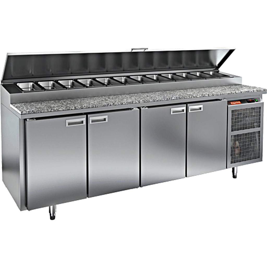 Стол холодильный для пиццы HiCold PZ1-1111/GN (1/3H) камень (R290) предназначен для использования на предприятиях общественного питания и торговли. Он объединяет охлаждаемый объем и рабочую поверхность, что делает его удобным решением для раскатки теста, нарезки ингредиентов и хранения продуктов, используемых при приготовлении пиццы, салатов и других блюд.