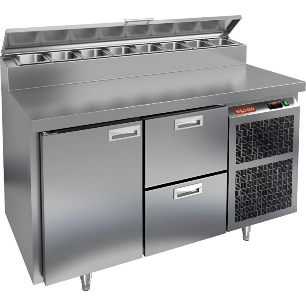 Каталог оборудования Холодильное оборудованиеСтолы охлаждаемыеСтолы холодильные для пиццыСтол холодильный для пиццы HiCold PZ1-12GN (1/3) Стол холодильный для пиццы HiCold PZ1-12GN (1/3) Код товара: 064-703 Поделиться: WhatsAppTelegram СравнитьДобавить в КПВ избранное 0 214 642 ₽ В корзину 0 шт Под заказСамовывоз сегодня бесплатно Взять в кредит Купить в лизинг Получить консультацию в WhatsApp Описание Характеристики Отзывы 0 Инструкции 1 Стол холодильный для пиццы HiCold PZ1-12GN (1/3) — профессиональное оборудование для предприятий общественного питания и торговли. Он объединяет рабочую поверхность для раскатки теста и подготовки ингредиентов с охлаждаемым блоком для кратковременного хранения скоропортящихся продуктов и напитков. Совмещение рабочей поверхности и холодильного объёма обеспечивает удобство и экономию времени — все необходимые компоненты всегда под рукой. Корпус и столешница выполнены из нержавеющей стали, что гарантирует долговечность, устойчивость к повреждениям и лёгкость ухода. Основные особенности: Нержавеющая столешница и корпус — прочность, гигиеничность и лёгкость очистки Динамическая система охлаждения — равномерное распределение холода Автоматическая оттайка — стабильная работа без образования наледи Электронная панель управления — точная настройка температуры 1 дверца и 2 выдвижных ящика — удобная организация внутреннего пространства 1 вместительная полка формата GN 1/1 (размер 530×325 мм) Автоматические доводчики дверей с фиксатором открытого положения — комфорт при работе Легкозаменяемые магнитные уплотнители — поддержание герметичности Открытая агрегатная часть — удобный доступ для обслуживания Регулируемые по высоте ножки — установка на неровных поверхностях Максимальная глубина гастроёмкостей: 100 мм Глубина рабочей поверхности: 324 мм Толщина столешницы и теплоизоляции: 50 мм Вместимость салат-бара: до 7 гастроёмкостей Стол холодильный HiCold PZ1-12GN (1/3) — надёжный и функциональный стол для пиццы и салатов. Прочная конструкция, продуманная организация внутреннего пространства и удобство эксплуатации делают его оптимальным решением для профессиональных кухонь. Изображение товара, представленного на фото, может отличаться от его фактического вида. Показать все Габаритные размеры1390×700×1000 ммДиапазон рабочей температурыот +2 до +10 °CРасположение агрегатаБоковое Материал столешницыНержавеющая Тип столаС дверьми и ящиками Тип двериГлухая Объём350 лТип гастроемкостейGN 1/3 Количество дверей1 штКоличество ящиков2 штРазмер полки530×325 ммНапряжение220 ВМощность0,2 кВтТип охлажденияДинамическое Тип оттайкиАвтоматическая Габариты в упаковке1550×800×1080 ммВес нетто141 кгВес брутто157 кгБрендHicoldВсе холодильные столы для пиццы HicoldВсе нержавеющие холодильные столы для пиццы Оставить отзыв Еще никто не оставил отзыв на этот товар Декларация о соответствии.pdf Ранее просмотрено Под заказ 188 722 ₽ Стол холодильный для пиццы HiCold PZ2-11/GN (1/6) З Под заказ 224 181 ₽ Стол холодильный для пиццы HiCold PZ2-111/GN (1/6H) стекло (R290)