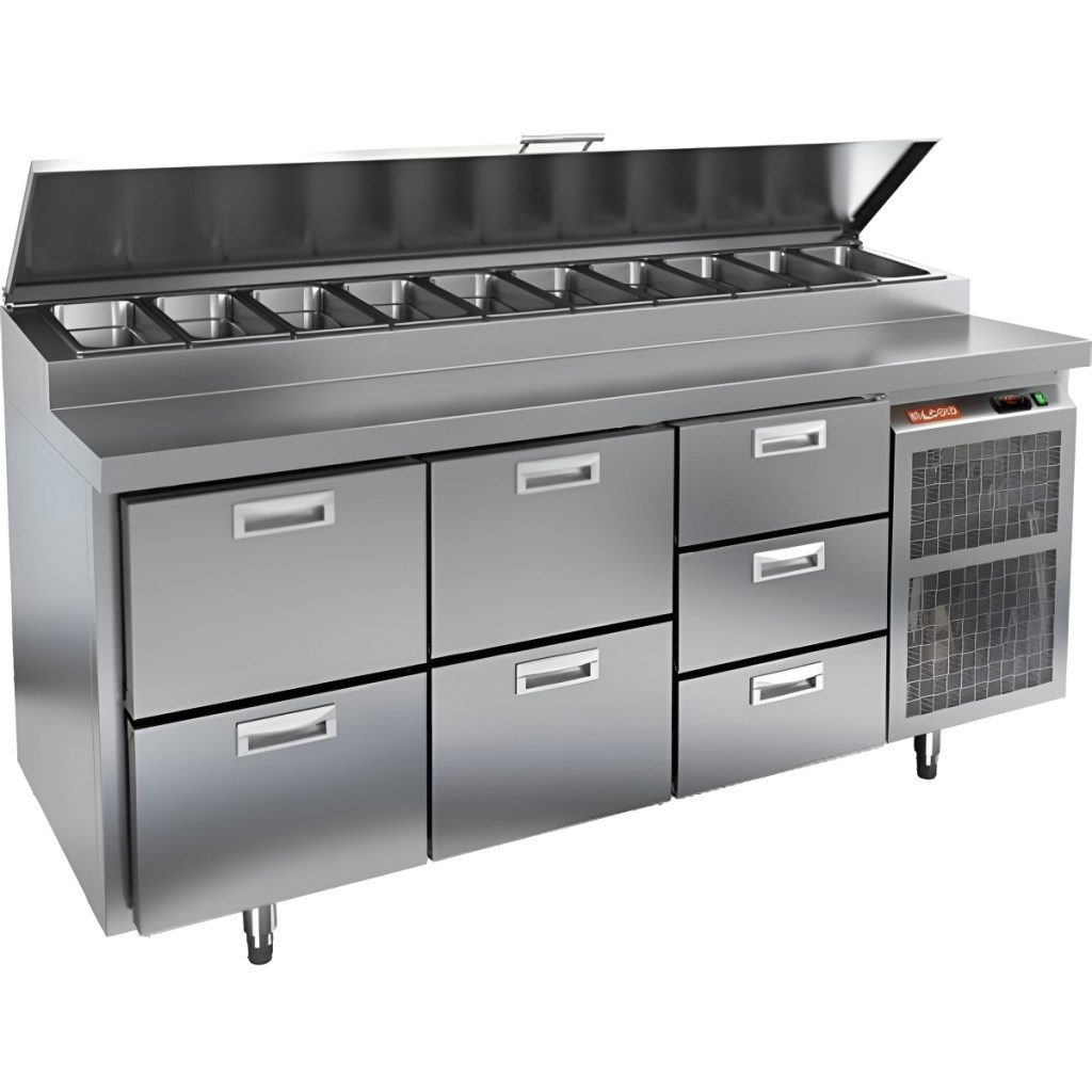 Каталог оборудования Холодильное оборудованиеСтолы охлаждаемыеСтолы холодильные для пиццыСтол холодильный для пиццы HiCold PZ1-223GN (1/3H) Стол холодильный для пиццы HiCold PZ1-223GN (1/3H) Код товара: 064-711 Поделиться: WhatsAppTelegram СравнитьДобавить в КПВ избранное 0 321 471 ₽ В корзину 0 шт Под заказСамовывоз сегодня бесплатно Взять в кредит Купить в лизинг Получить консультацию в WhatsApp Описание Характеристики Отзывы 0 Стол холодильный для пиццы HiCold PZ1-223GN (1/3H) — профессиональное оборудование для предприятий общественного питания и торговли. Он сочетает рабочую поверхность для раскатки теста и подготовки ингредиентов с охлаждаемым блоком для кратковременного хранения скоропортящихся продуктов и напитков. Такое решение обеспечивает максимальное удобство — все необходимые компоненты всегда находятся под рукой. Корпус и столешница выполнены из нержавеющей стали, что гарантирует долговечность, устойчивость к повреждениям и лёгкость ухода. Основные особенности: Нержавеющая столешница и корпус — прочность, гигиеничность и лёгкость очистки Динамическая система охлаждения — равномерное распределение холода Автоматическая оттайка — стабильная работа без образования наледи Электронная панель управления — точная настройка температуры 7 выдвижных ящиков — удобная организация внутреннего пространства без дверцы Автоматические доводчики ящиков — комфорт при работе Легкозаменяемые магнитные уплотнители — поддержание герметичности Открытая агрегатная часть — лёгкий доступ для обслуживания Регулируемые по высоте ножки — установка на неровных поверхностях Максимальная глубина гастроёмкостей: 100 мм Глубина рабочей поверхности: 324 мм Толщина столешницы и теплоизоляции: 50 мм Вместимость салат-бара: до 10 гастроёмкостей Стол холодильный HiCold PZ1-223GN (1/3H) — надёжный и функциональный холодильный стол для пиццы и салатов. Отсутствие дверцы и продуманная система хранения обеспечивают быстрый доступ к ингредиентам, удобство эксплуатации и высокую производительность на профессиональной кухне.Изображение товара, представленного на фото, может отличаться от его фактического вида. Показать все Габаритные размеры1835×700×1000 ммДиапазон рабочей температурыот +2 до +10 °CРасположение агрегатаБоковое Материал столешницыНержавеющая Тип столаС ящиками Объём505 лТип гастроемкостейGN 1/3 Количество ящиков7 штНапряжение220 ВМощность0,5 кВтТип охлажденияДинамическое Тип оттайкиАвтоматическая Габариты в упаковке2000×850×1140 ммВес нетто172 кгВес брутто200 кгБрендHicoldВсе холодильные столы для пиццы HicoldВсе нержавеющие холодильные столы для пиццы Оставить отзыв Еще никто не оставил отзыв на этот товар Ранее просмотрено Под заказ 253 251 ₽ Стол холодильный для пиццы HiCold PZ3-21/GN камень