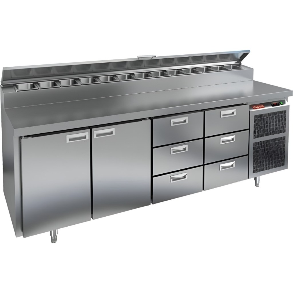 Каталог оборудования Холодильное оборудованиеСтолы охлаждаемыеСтолы холодильные для пиццыСтол холодильный для пиццы HiCold PZ2-1133GN (1/6) Стол холодильный для пиццы HiCold PZ2-1133GN (1/6) Код товара: 064-759 Поделиться: WhatsAppTelegram СравнитьДобавить в КПВ избранное 0 342 442 ₽ В корзину 0 шт Под заказСамовывоз сегодня бесплатно Взять в кредит Купить в лизинг Получить консультацию в WhatsApp Описание Характеристики Отзывы 0 Стол холодильный для пиццы HiCold PZ2-1133GN (1/6) предназначен для кухонь и предприятий общественного питания. Он используется для раскатки теста, подготовки ингредиентов для пиццы, салатов и других блюд, а также для охлаждения и кратковременного хранения скоропортящихся продуктов. Модель совмещает нержавеющую рабочую поверхность и охлаждаемый отсек с 2 дверьми и 6 ящиками, обеспечивая удобный доступ к ингредиентам и эффективное хранение. Особенности: Динамическая система охлаждения для равномерного поддержания температуры Автоматическая оттайка для удобного обслуживания Электронная панель управления для точной настройки параметров Вместительная внутренняя полка формата GN 1/1 (размер 530×325 мм) 2 двери и 6 вместительных ящика для хранения ингредиентов Автоматические доводчики дверей с фиксатором открытого положения Легкозаменяемые магнитные уплотнители для герметичности Открытая агрегатная часть для легкого доступа к компонентам Регулируемые по высоте ножки для устойчивости Нержавеющая столешница глубиной 486 мм и толщиной 50 мм — устойчива к коррозии, легко моется и гигиенична Толщина теплоизоляции: 50 мм Максимальная глубина гастроемкостей: 100 мм Вместимость салат-бара: 13 гастроемкости Стол холодильный HiCold PZ2-1133GN (1/6) — это надежный и функциональный стол для пиццы. Он объединяет рабочую поверхность и охлаждаемый отсек, упрощает хранение и подготовку ингредиентов, обеспечивает удобство работы повара и соответствует стандартам профессиональной кухни. Изображение товара, представленного на фото, может отличаться от его фактического вида. Показать все Габаритные размеры2280×700×1000 ммДиапазон рабочей температурыот +2 до +10 °CРасположение агрегатаБоковое Материал столешницыНержавеющая Тип столаС дверьми и ящиками Тип двериГлухая Объём660 лТип гастроемкостейGN 1/6 Количество дверей2 штКоличество ящиков6 штРазмер полки530×325 ммНапряжение220 ВМощность0,5 кВтТип охлажденияДинамическое Тип оттайкиАвтоматическая Габариты в упаковке2420×850×1080 ммВес нетто208 кгВес брутто240 кгБрендHicoldВсе холодильные столы для пиццы HicoldВсе нержавеющие холодильные столы для пиццы Оставить отзыв Еще никто не оставил отзыв на этот товар Ранее просмотрено Под заказ 158 391 ₽ Стол холодильный для пиццы HiCold PZE1-11GN (1/3) Под заказ 220 221 ₽ Стол холодильный для пиццы HiCold PZE1-1111GN (1/3)