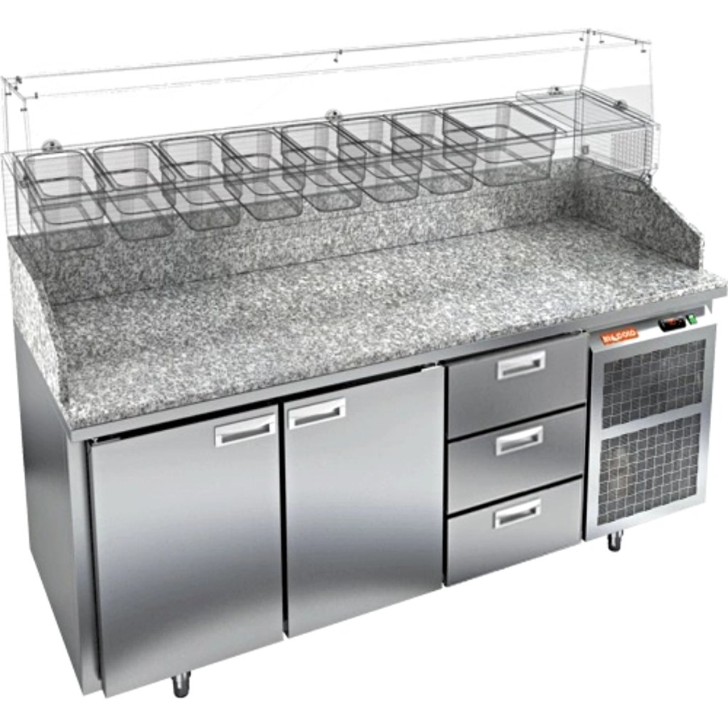 HiCold PZE3-113/GN камень— это надёжный и функциональный холодильный стол для пиццы, который сочетает прочность, эргономику и эффективное охлаждение. Благодаря гранитной столешнице, корпусу из нержавеющей стали, двум глухим дверям и двум выдвижным ящикам он станет универсальным решением для профессиональной кухни.