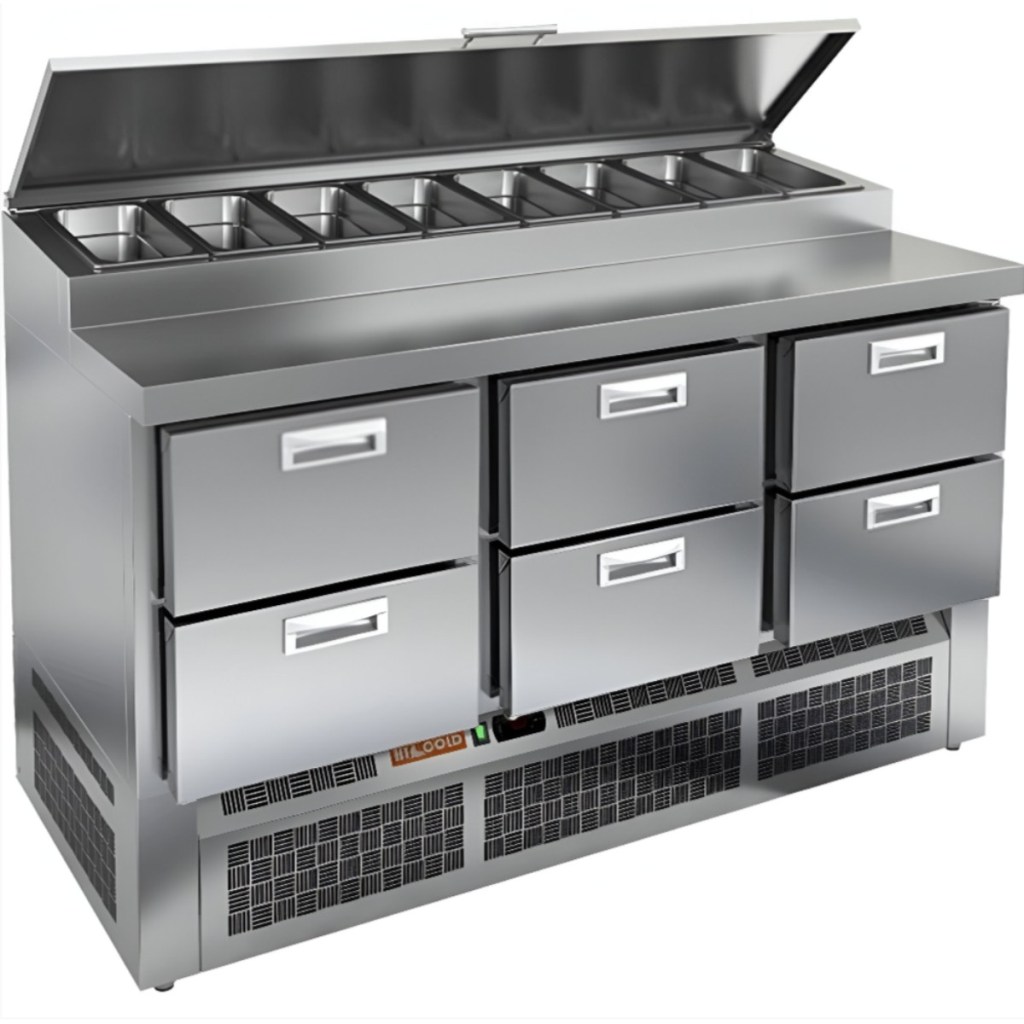 Каталог оборудования Холодильное оборудованиеСтолы охлаждаемыеСтолы холодильные для пиццыСтол холодильный для пиццы HiCold PZE1-222GN (1/3) Стол холодильный для пиццы HiCold PZE1-222GN (1/3) Код товара: 064-727 Поделиться: WhatsAppTelegram СравнитьДобавить в КПВ избранное 0 278 361 ₽ В корзину 0 шт Под заказСамовывоз сегодня бесплатно Взять в кредит Купить в лизинг Получить консультацию в WhatsApp Описание Характеристики Отзывы 0 Стол холодильный для пиццы HiCold PZE1-222GN (1/3) — профессиональное оборудование для предприятий общественного питания и торговли. Он предназначен для раскатки теста и подготовки ингредиентов, используемых при приготовлении пиццы, салатов и других блюд, а также для охлаждения и кратковременного хранения скоропортящихся продуктов и напитков. Совмещение рабочей поверхности и охлаждаемого блока значительно упрощает работу повара — все необходимые компоненты находятся под рукой. Корпус и столешница выполнены из нержавеющей стали, обеспечивая долговечность, устойчивость к повреждениям и лёгкость ухода. Основные особенности: Динамическая система охлаждения — равномерное распределение холода по всему объёму Автоматическая оттайка — стабильная работа без образования наледи Электронная панель управления — точная настройка температуры 6 выдвижных ящика — удобная организация внутреннего пространства Автоматические доводчики ящиков — комфорт при работе Легкозаменяемые магнитные уплотнители — поддержание герметичности Открытая агрегатная часть — лёгкий доступ к техническим элементам Регулируемые по высоте ножки — установка на неровных поверхностях Максимальная глубина гастроёмкостей: 100 мм Глубина рабочей поверхности: 324 мм Толщина столешницы: 50 мм Толщина теплоизоляции: 50 мм Вместимость салат-бара: до 8 гастроёмкостей HiCold PZE1-222GN (1/3) с четырьмя выдвижными ящиками — надёжный и функциональный холодильный стол для пиццы и салатов. Продуманная организация хранения и удобство эксплуатации обеспечивают быстрый доступ к ингредиентам и повышают производительность на профессиональной кухне.Изображение товара, представленного на фото, может отличаться от его фактического вида. Показать все Габаритные размеры1485×700×990 ммДиапазон рабочей температурыот +2 до +10 °CРасположение агрегатаНижнее Материал столешницыНержавеющая Тип столаС ящиками Объём375 лТип гастроемкостейGN 1/3 Количество ящиков6 штНапряжение220 ВМощность0,22 кВтТип охлажденияДинамическое Тип оттайкиАвтоматическая Габариты в упаковке1680×840×1170 ммВес нетто115 кгВес брутто153 кгБрендHicoldВсе холодильные столы для пиццы HicoldВсе нержавеющие холодильные столы для пиццы Оставить отзыв Еще никто не оставил отзыв на этот товар Ранее просмотрено Под заказ 434 242 ₽ Стол холодильный для пиццы HiCold PZ2-3333GN (1/6) Под заказ 244 971 ₽ Стол холодильный для пиццы HiCold PZ2-211/GN (1/6H) Под заказ 260 272 ₽ Стол холодильный для пиццы HiCold PZ1-113GN (1/3H) Под заказ 206 541 ₽ Стол холодильный для пиццы HiCold PZ1-11GN (1/3) М