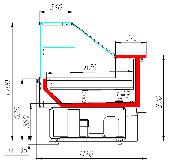 Глубина зоны выкладки: 870 мм.