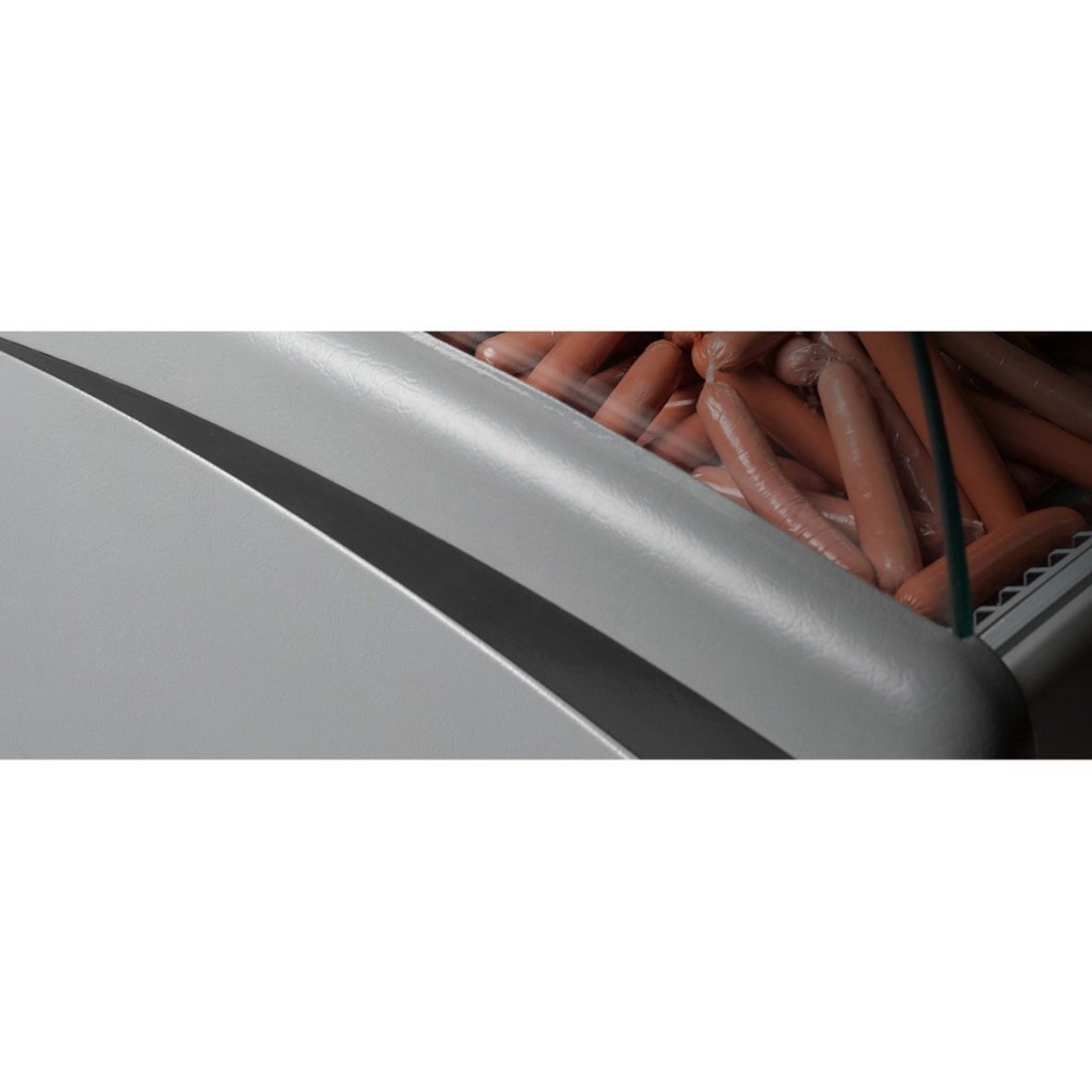 Витрина оснащена изогнутым фронтальным стеклом, энергоэффективной LED-подсветкой и вместительной охлаждаемой камерой для хранения товарного запаса. Экспозиционная и рабочая поверхности выполнены из нержавеющей стали, а теплоизоляция из пенополиуретана способствует стабильному поддержанию температуры и снижению энергопотерь.
