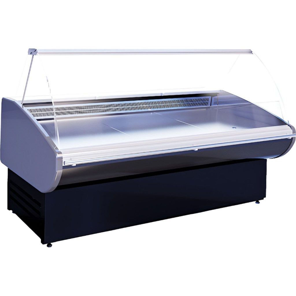 Модель оснащена изогнутым фронтальным стеклом и LED-подсветкой, обеспечивая яркую и привлекательную экспозицию. Вместительная охлаждаемая камера позволяет хранить запас товаров, а рабочие поверхности выполнены из нержавеющей стали для долговечности и легкой очистки. Боковые панели изготовлены из ударопрочного ABS-пластика, а теплоизоляция – из пенополиуретана.